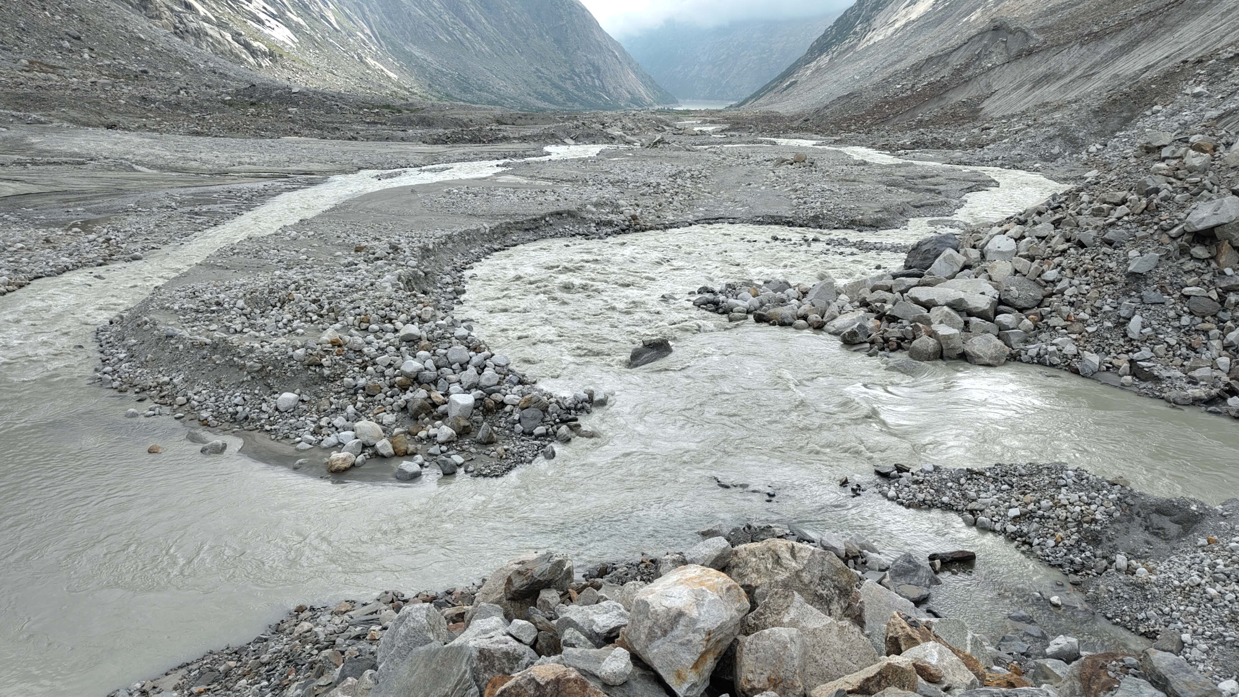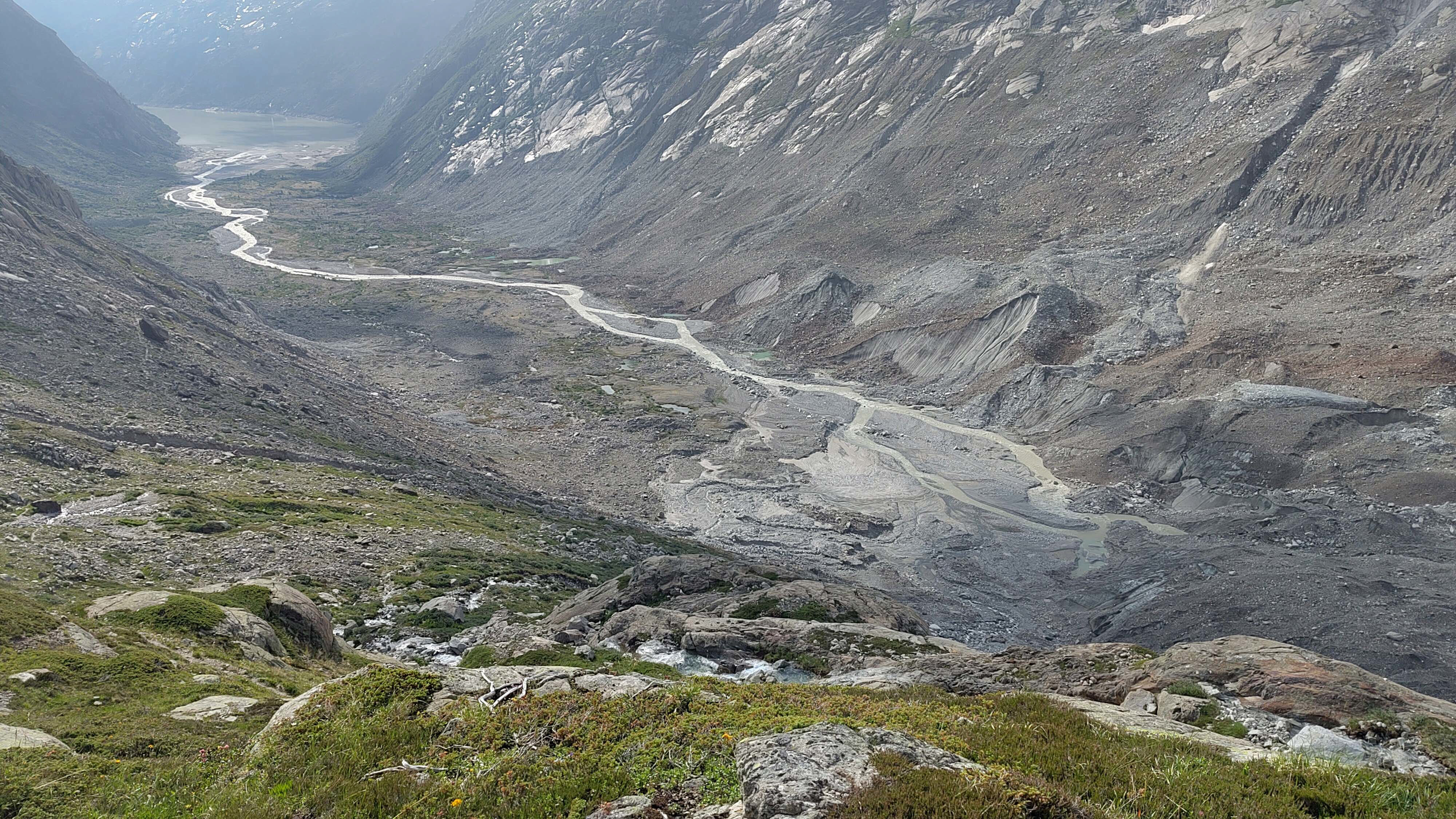 Am 5.7.2025 haben sich rund 20 Menschen im Gletschervorfeld Unteraar eingefunden. Einige der Teilnehmenden haben eine Nacht in der Lauteraarhütte verbracht und sich dem Gletscherweib vom Gletscher her genähert. Dabei durchliefen sie die frisch entstandenen Flächen, die neben viel Blockgelände zahlreiche Sand- und Kiesflächen und Tümpel aufweisen. Man darf sich auf die weitere Entwicklung freuen.
