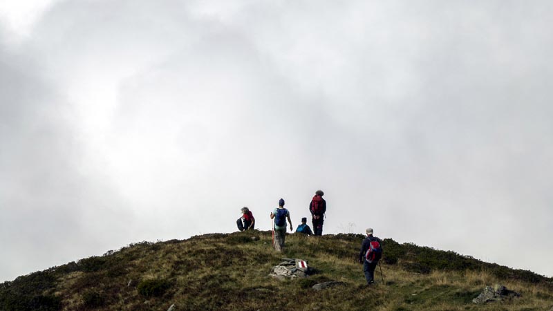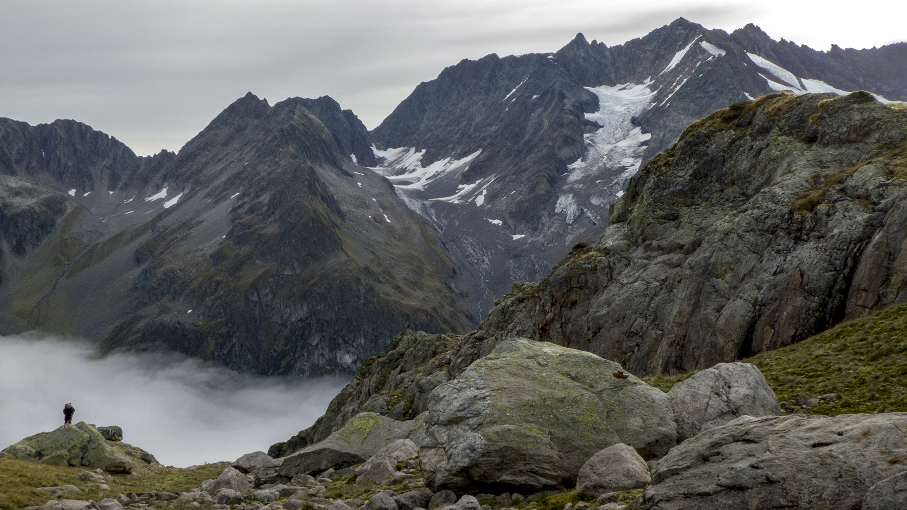 Am Samstag zogen wir weiter durch das Tal, über den Bächligletscher und hoch zur Oberen Bächlilicken. Nach einer kurzen Abfahrt ins Hiendertällti folgte der zweite Aufstieg zum Hubelhorn. Eine grossartige Aussicht erwartete uns, aber auch viele Leute, die kaum alle auf dem schmalen Gipfel Platz fanden.