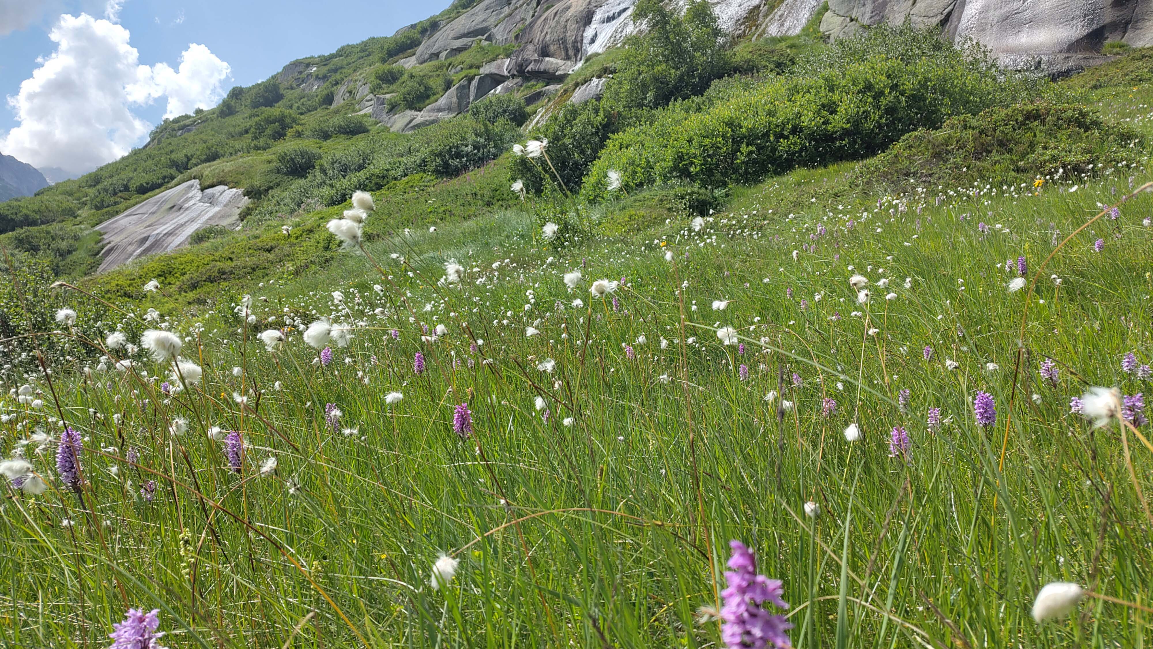 Das Gletschervorfeld verändert sich rasant. Von karger Steinwüste kann hier keine Rede sein. Dieses Thema hat auch Priska Walss in ihrer Ansprache, einer Ode an die Vielfalt, aufgegriffen.