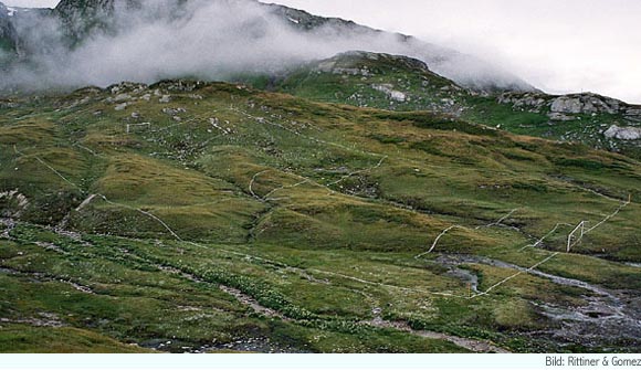 ![]() Dem Widerstand gegen den Kraftwerkgigantismus an der Grimsel schlossen sich 1992 Künstlerinnen und Künstler an. Zusammengebracht vom Grimselverein und der IG Kultur Berner Oberland zogen jährlich bis zu 20 Kunstschaffende aus der ganzen Schweiz für mehrere Tage an den Ursprung der Aare. Unter dem Motto "l'art pour l'aar" setzten sie sich - individuell oder als Gruppe - mit der Bedrohung der geschützten Landschaft auseinander und stellten ihre dokumentierten Arbeiten in verschiedenen Schweizer Städten aus. Mit Unterstützung von Umweltorganisationen und dem Bund konnten die Werke in einem Katalog veröffentlicht werden. Zusammen mit dem Schweizerischen Alpenclub SAC führte l'art pour l'aar im Raum Grimsel-Furka 1999 eine Kunstaktion zum Thema Alpengletscher durch. An "Gletscherblick 99" beteiligten sich 26 Kunstschaffende aus der Schweiz und Deutschland. (Katalog erhältlich im Schweizerischen Alpinen Museum).